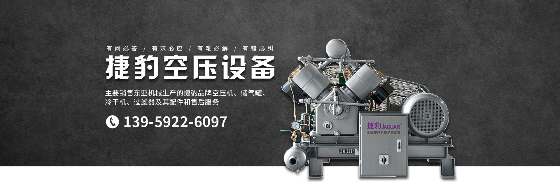 主要銷售東亞機械生產(chǎn)的捷豹品牌空壓機、儲氣罐、冷干機、過濾器及其配件和售后服務(wù)。